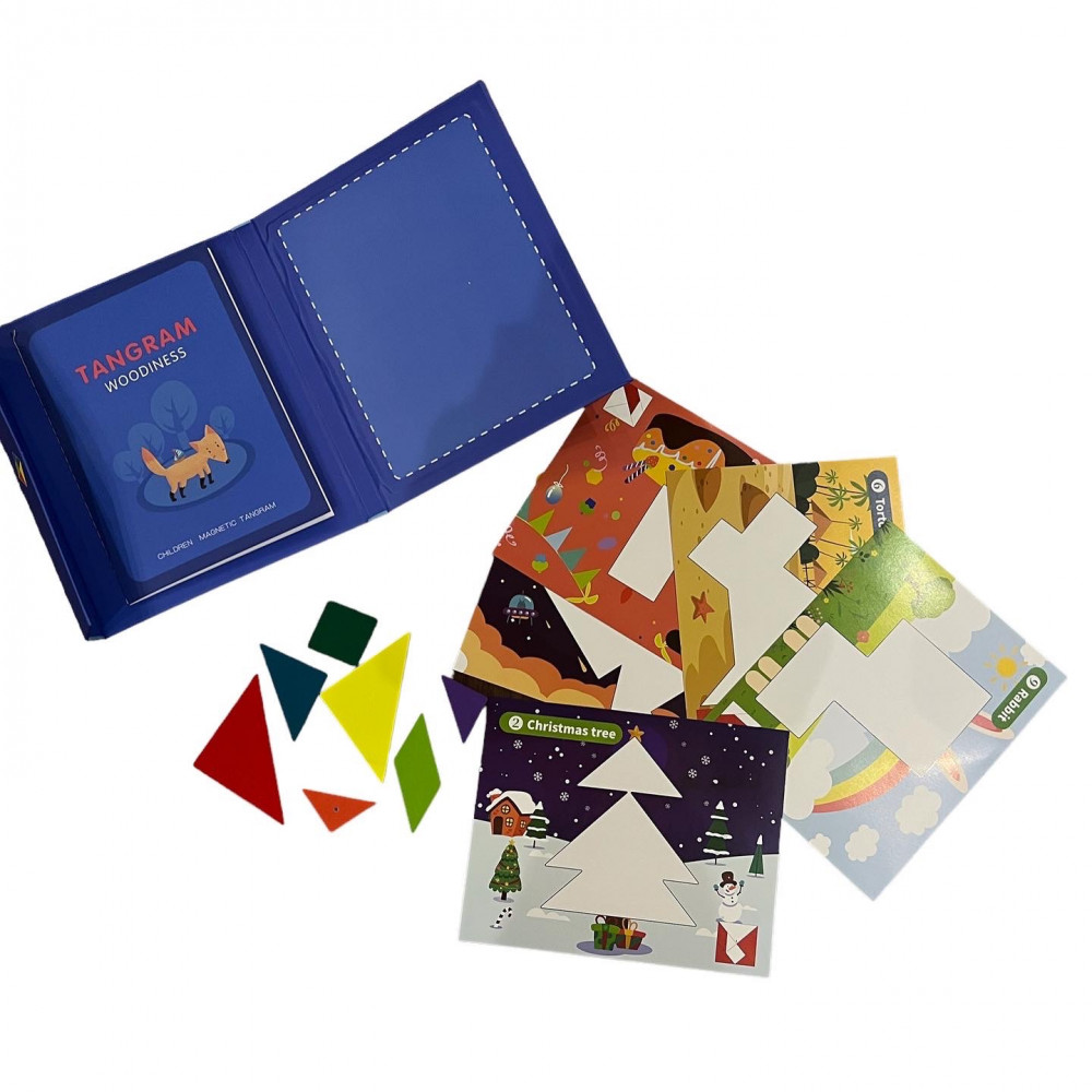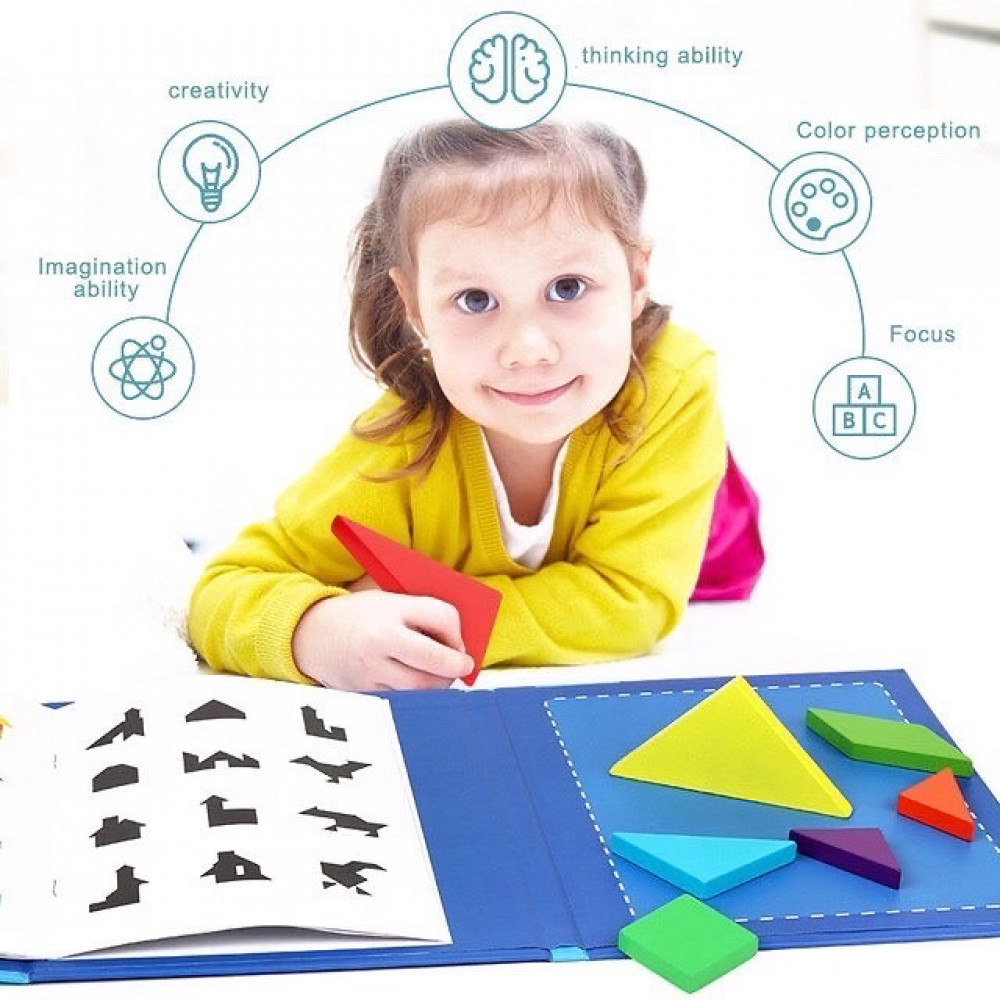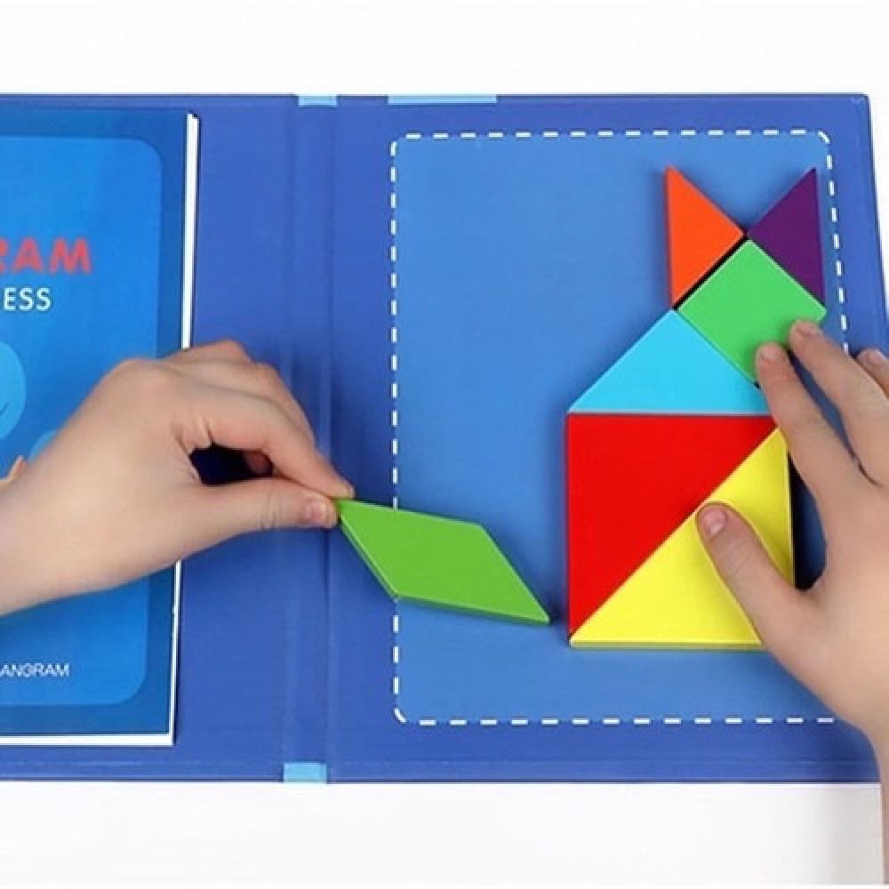 يحتوي الكتاب على لوح مغناطيسي - 7 أشكال هندسية مغناطيسية - 10 بطاقات مطابقة - كتيب يحتوي على 180 نموذج يقوم الطفل بتقليده على اللوح المغناطيسي فالكتاب ).