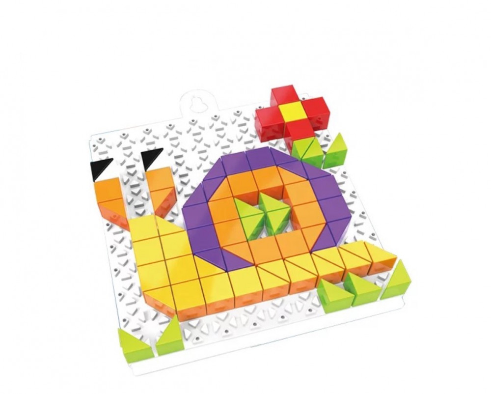 مطلوب من الطفل تركيب الحبّات الملونة لتكوين الأشكال المطلوبة.
